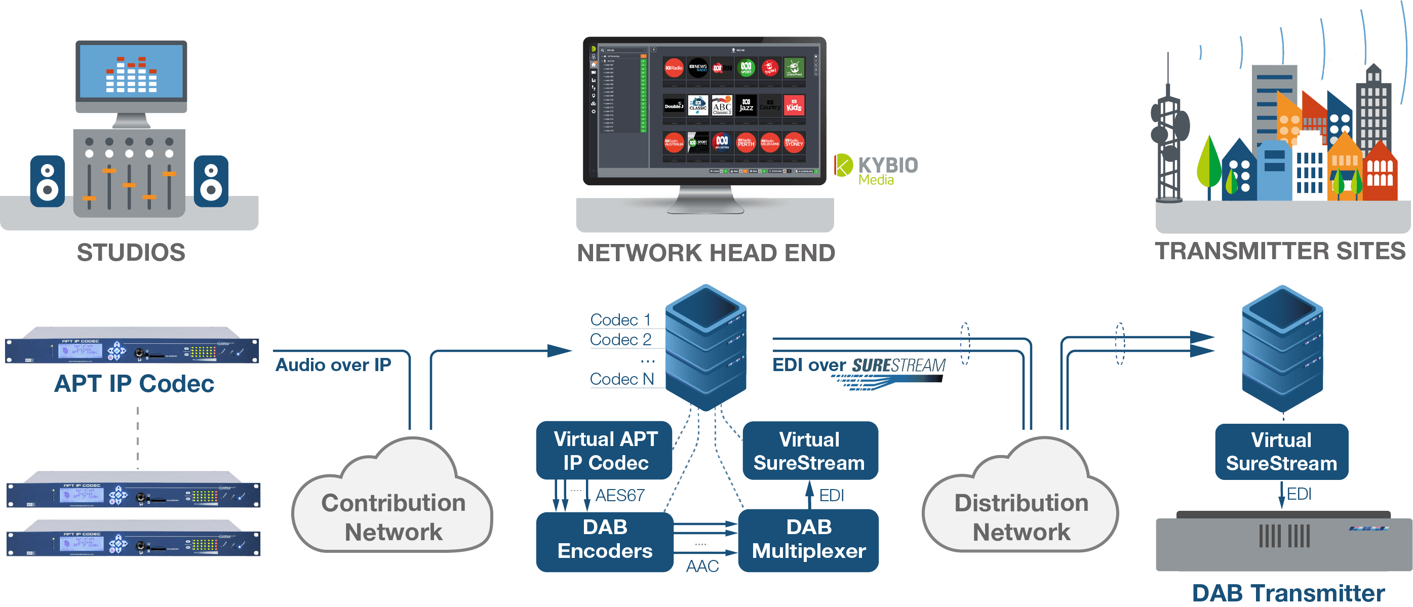 The Virtual APT IP Codec is also enhanced by Virtual ScriptEasy for advanced automation, and Kybio, for end to end monitoring and control of the codec fleet.
