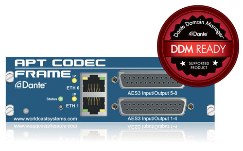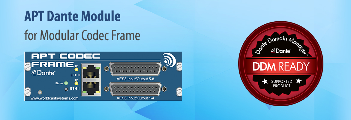 The APT Dante Network Interface enables you to connect your APT Multi-channel AoIP Codec directly to a Dante or AES67 network.