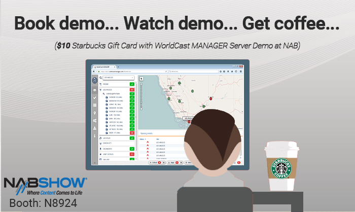 Get a WorldCast MANAGER Demo at NAB 2017 and Collect your $10 Starbucks Gift Card