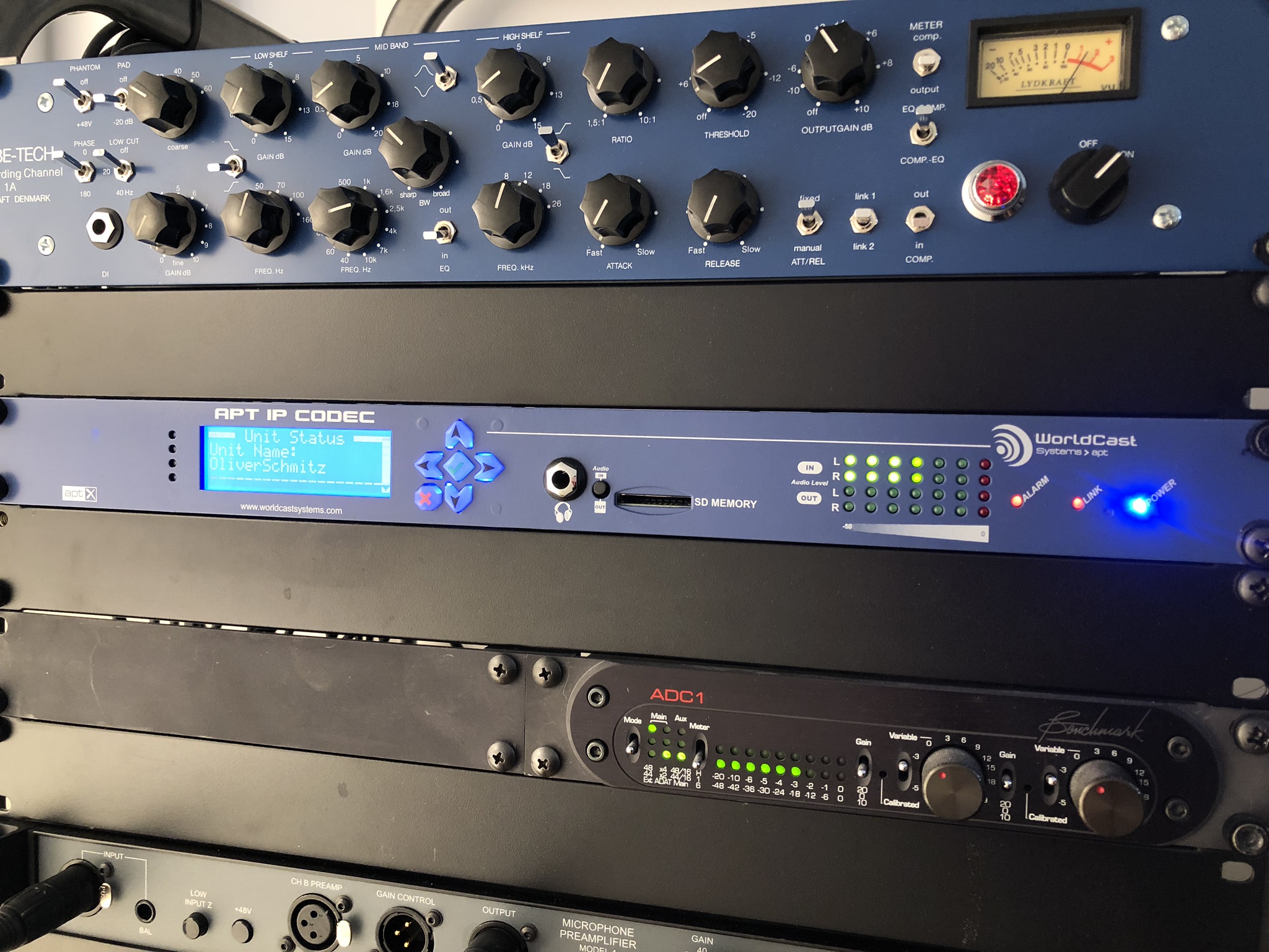 Sending a perfect signal to his client - that is what matters most to Oliver Schmitz. For that reason, his home studio is equipped with professional, top-of-the line equipment such as a StudioBricks audio booth, U87 Neumann, Vovox Cabling… He is now also equipped with an APT IP Codec with SureStream to replace the ISDN codec systems and offer a perfect solution in the IP world.