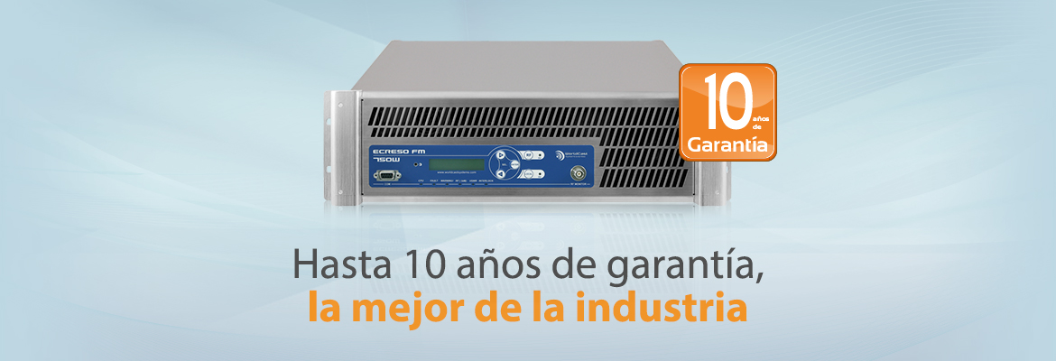 WorldCast Systems ofrece una garantía estándar de 3 años en todos nuestros transmisores de FM y hasta 10 años, sí, DIEZ AÑOS de garantía en nuestra serie de transmisores de FM compactos y nuevos ECRESO FM de 5 kW/10 kW por un pequeño costo adicional. Ningún otro fabricante de transmisores de FM ofrece nada similar a este compromiso y esta confianza. Podemos ofrecer la garantía de 10 años con confianza gracias a: