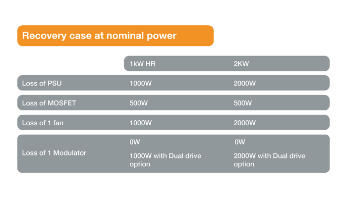 Aumente el tiempo de transmisión de su transmisor con la opción de doble drive o las soluciones de redundancia 1+1 y N+1.