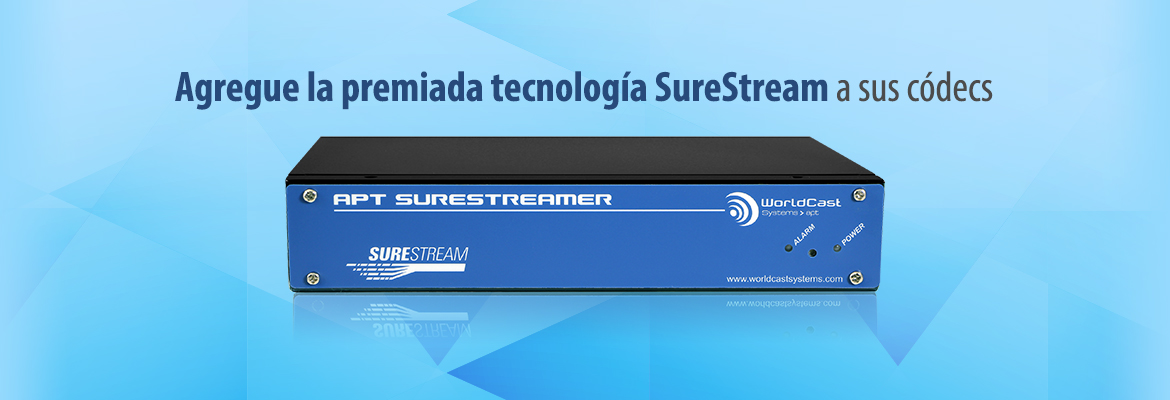 La tecnología APT SureStream technology es una innovación revolucionaria de APT que permite a las emisoras utilizar enlaces IP de bajo costo y, a la vez, mantener la confiabilidad y la calidad del audio profesional para radiodifusión. Transmite con la fiabilidad y la calidad de audio que se esperan de los enlaces E1/T1, a un costo mucho menor. La tecnología APT SureStream ofrece el beneficio adicional de la "redundancia siempre activa".