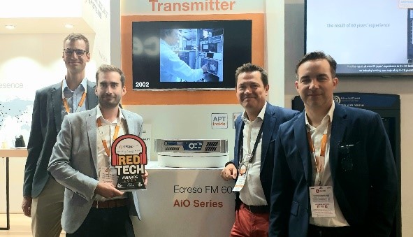 Bordeaux, France. September 2022 - WorldCast Systems, a leading global supplier of radio broadcast solutions, receives the RedTech Best In Show Award at the IBC 2022 Show for its Ecreso FM 1kW from the new AiO series.
