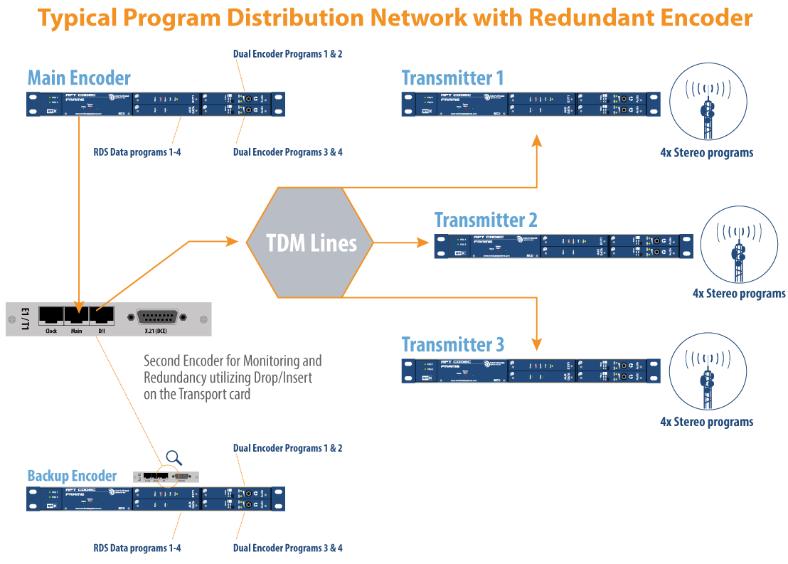With a modular, single-platform approach, multiple layers of redundancy and exceptional scalability and flexibility, the APT E1/T1 MULTI-CHANNEL CODEC is the perfect solution for Studio-Transmitter Links, Studio-Studio Links, Remote broadcast, backhaul and studio linking applications.