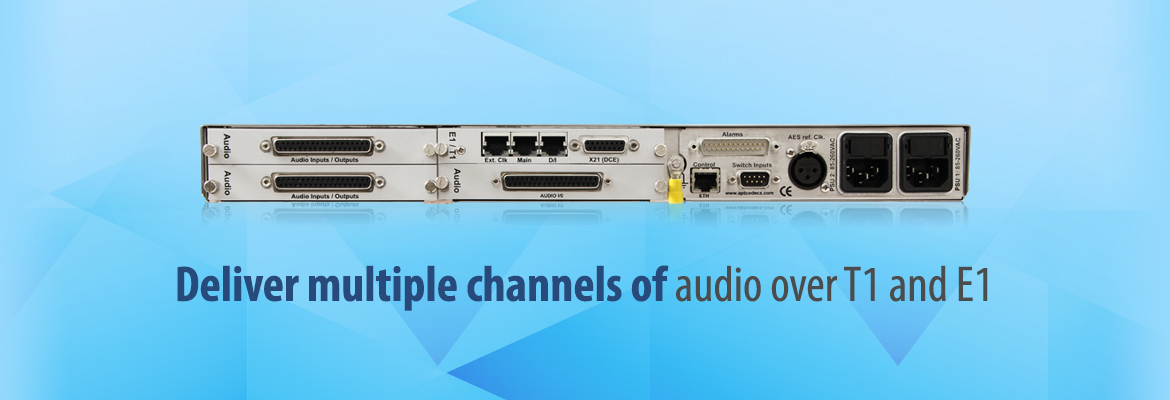 El CÓDEC MULTICANAL DE APT puede utilizarse para el transporte de audio sobre T1/E1. En el bastidor 1U pueden alojarse hasta 3 tarjetas extraplanas de audio que entregan audio simple o dúplex, analógico o digital mediante un conector universal tipo D de 37 vías.