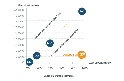 Le niveau intrinsèque de redondance du Ecreso FM 5-10kW est similaire à un sytème 1+1 mais pour un coût nettement inférieur.
